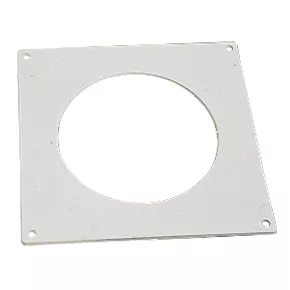 PVC. Ideal for covering any pre-existing holes. Fits over 100mm round pipe ducting. Suitable for commercial and domestic use.